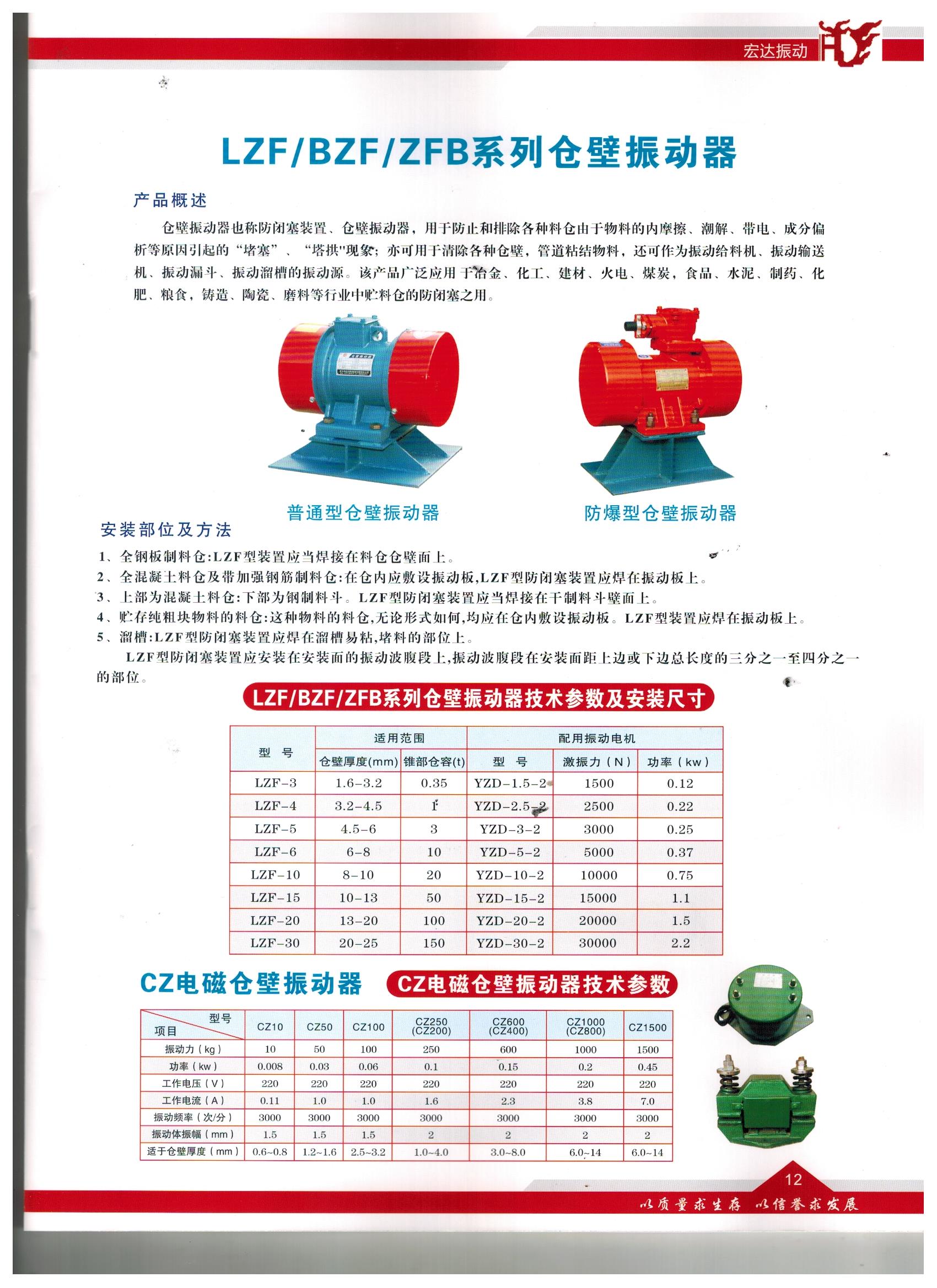 倉壁振動器是采用可調激振力的振動電機為激振源的通用倉壁振動器,能有效地防止和消除料倉、料罐或料斗內物料的起拱、管狀通道、粉倉等閉塞現象的專用設備,以保證料流暢通。本裝置可廣泛用于電力、煤炭、建材、礦山、化工、冶金、鑄造、輕工、糧食、交通等各種行業。
