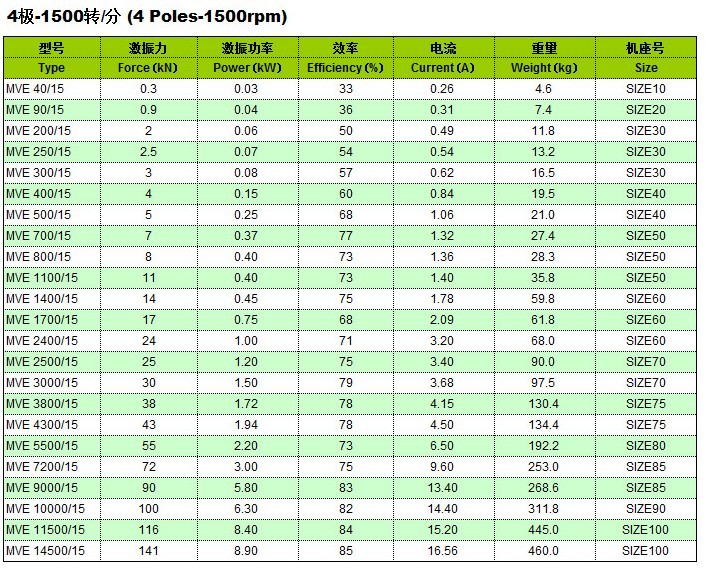 MVE振動電機選型樣冊